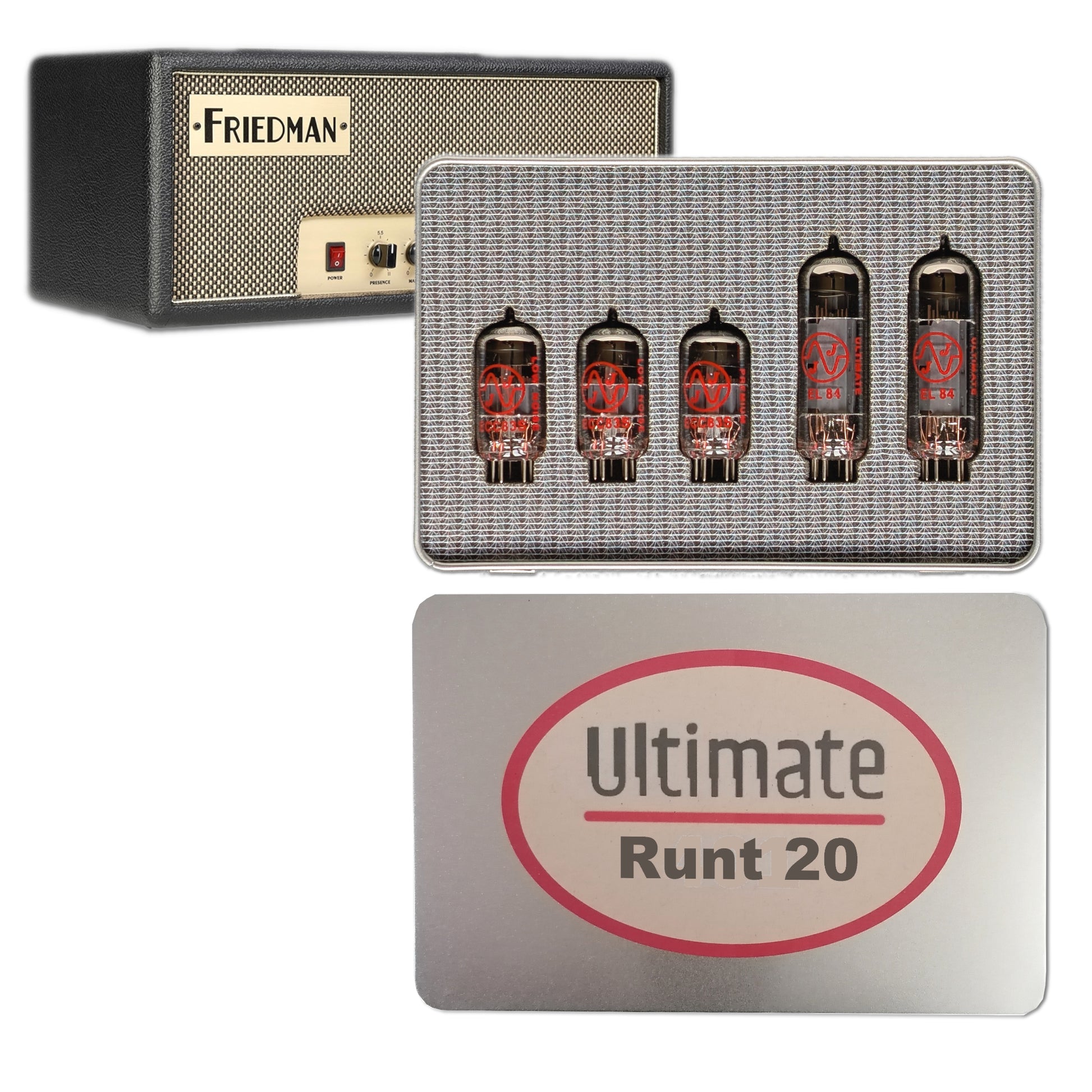 Le Friedman Runt 20 est une tête à lampes de 20 watts signée Dave Friedman — le réparateur et modificateur d'amplis préféré des plus grands guitaristes. Deux canaux, un clean qui va de la clarté cristalline à un léger breakup, et un canal overdrive qui couvre le classic rock jusqu'au metal. Une sortie XLR avec simulation de baffle intégrée, et la possibilité de jouer sans baffle connecté : c'est une tête conçue aussi bien pour la scène que pour le studio.