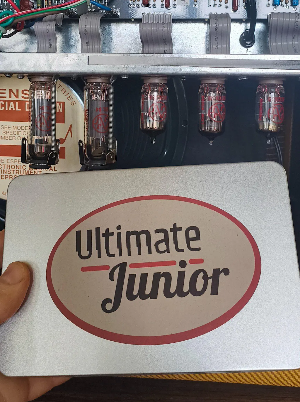 Les EL84 Sovtek ont un son plus droit, plus tranchant. Elles sont extrêmement fiables et robustes. Idéales pour les combos, quand les lampes sont très près du haut-parleur — ce qui est précisément le cas du Blues Junior.